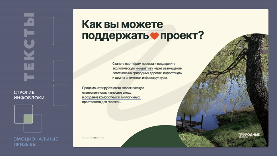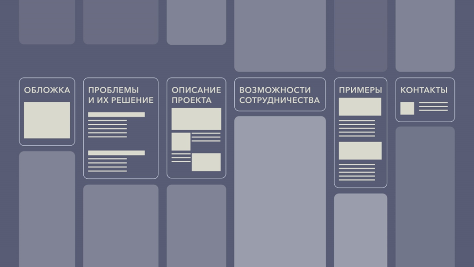 В подобных проектам мы рекомендуем делать не только презентации в формате .pdf, но и презентационные сайты, лендинги, которые могут служить не только удобным инструментом демонстрации проекта, но и собирать обратную связь и заявки от заинтересованных лиц.